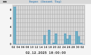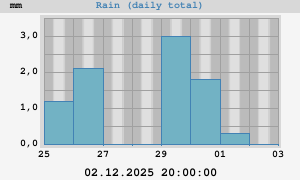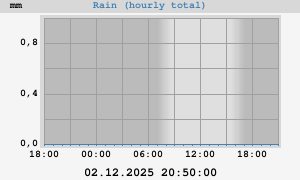 Total: 0,3 mm Max rate: 1,2 mm/h at 01.12.2025 01:05:05