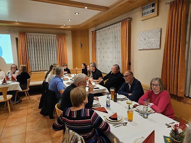 Am 29.11.2025 fand unsere Weihnachtsfeier in Dondörflein Gasthaus Schuh statt. 52 Mitglieder folgten der Einladung und verbrachten einen schönen Abend. Der 2. Vorstand eröffnete mit einer kurzen Rede, und nachdem erst mal fürs leibliche Wohl gesorgt wurde, gab es einen Rückblick vom Ausflug auf die Gerlitzen und auf das Jahr 2025. Großen Dank an Renate für das sehr gute Essen.
